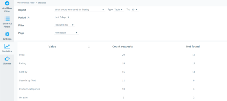 Therefore, experiment, test, and make an informed management business decision, and the statistics of the best product filter for WooCoommercee – WooBeWoo will always help you with the data!