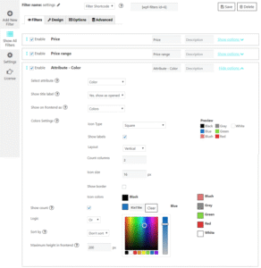 | Filter by Attributes (e.g. Color, Size) | Icons supported |